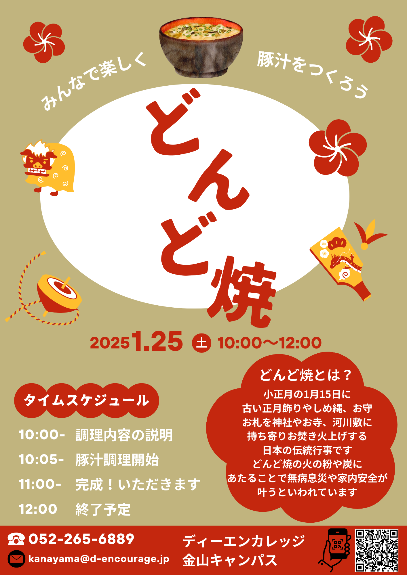 地域の伝統であるどんど焼きという文化について知っていただき、豚汁を作ってみんなで楽しんでもらう。