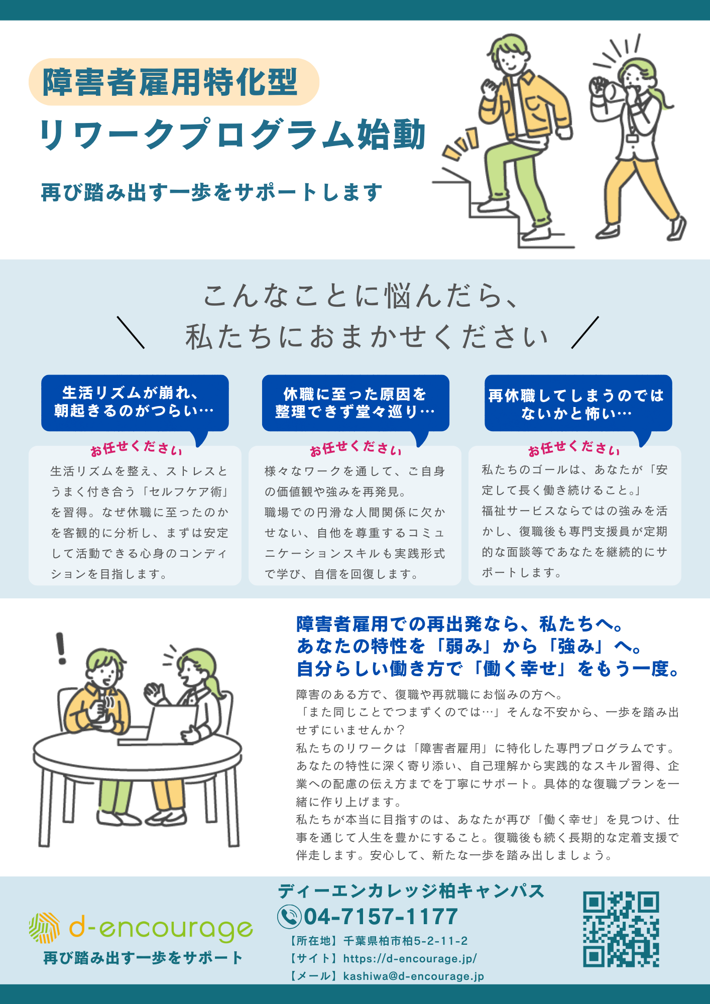 休職や離職を経験し、復職や再就職へ向かうとき、そんな不安から一歩を踏み出せずにいませんか?