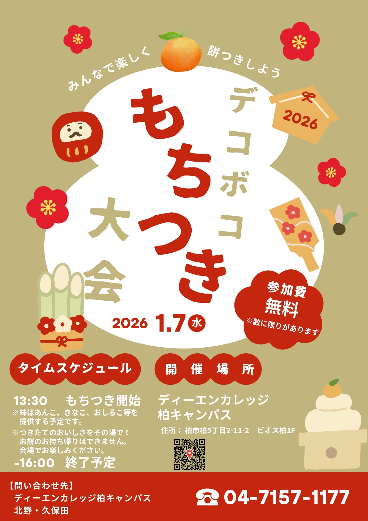 令和8年01月07日(水) 13:30~16:00、ディーエンカレッジ柏キャンパスにて