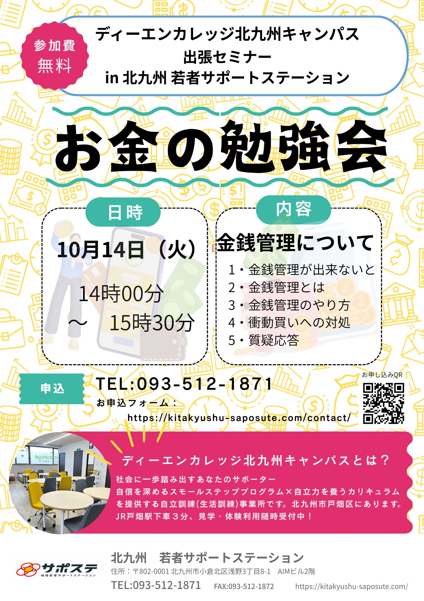 10/14(火)14:00~15:30で出張セミナー「お金の勉強会」を