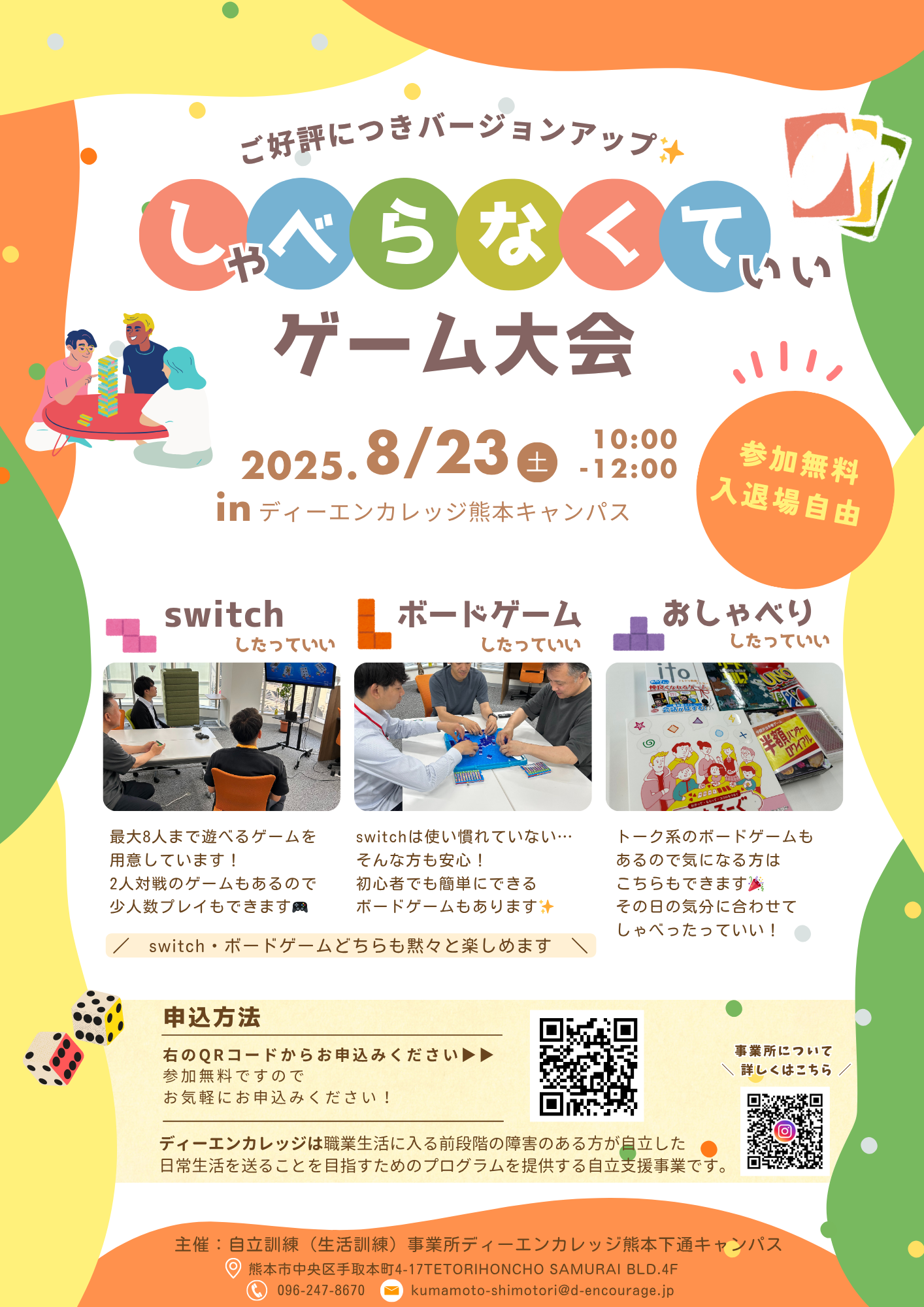 しゃべらなくてもいいし、しゃべったっていい!気軽に参加できるゲーム大会です