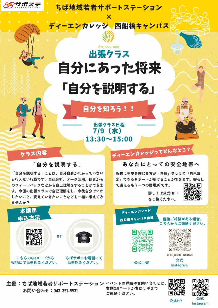 7/9(水)13:30~15:00でディーエンカレッジ西船橋キャンパスが