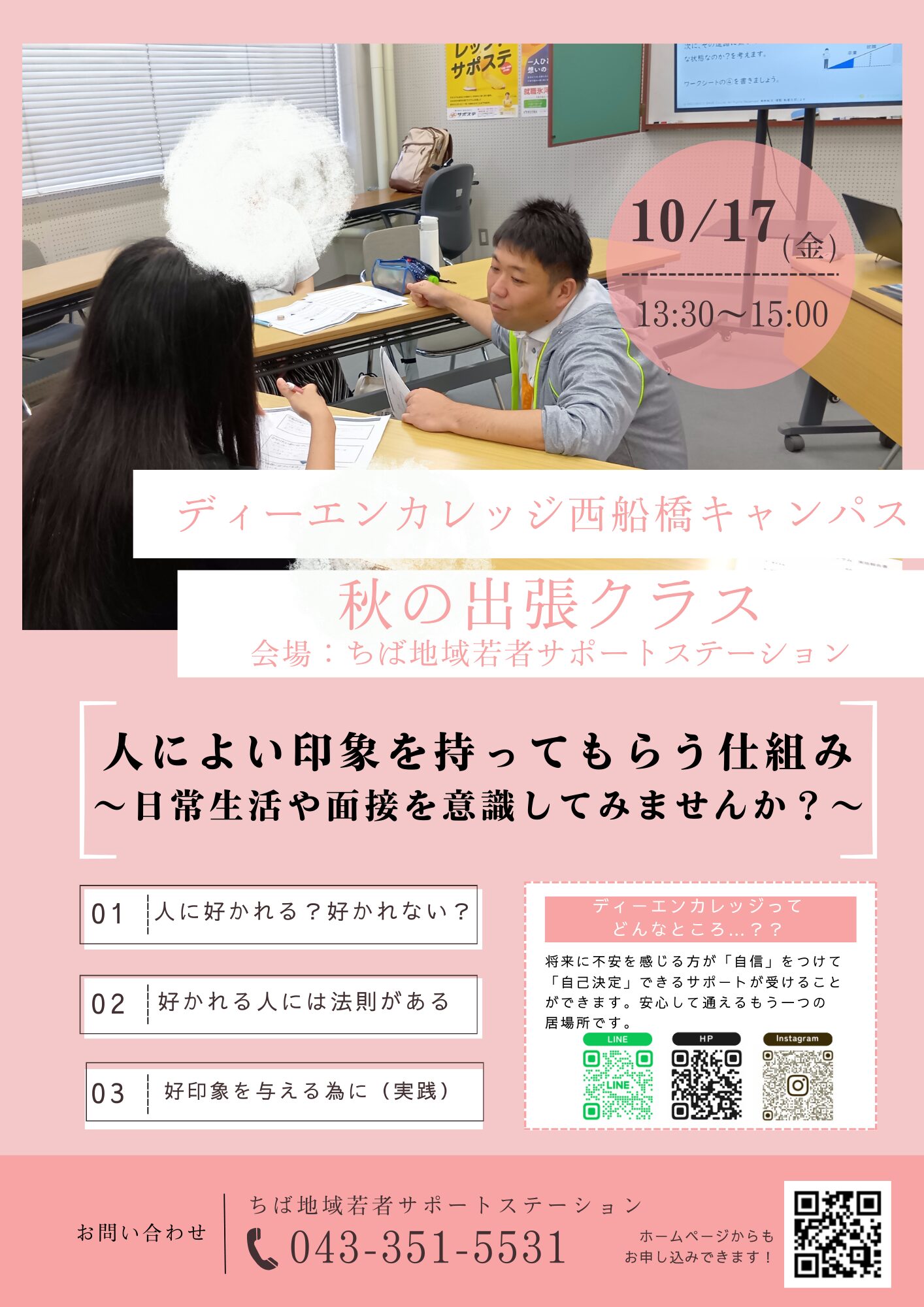 10月も引き続き、ちば地域若者サポートステーションさんにて出張クラスを開催します。