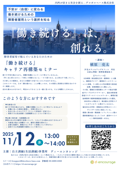 本セミナーは、復職や転職に悩む当事者の方々やご家族の皆様はもちろん、