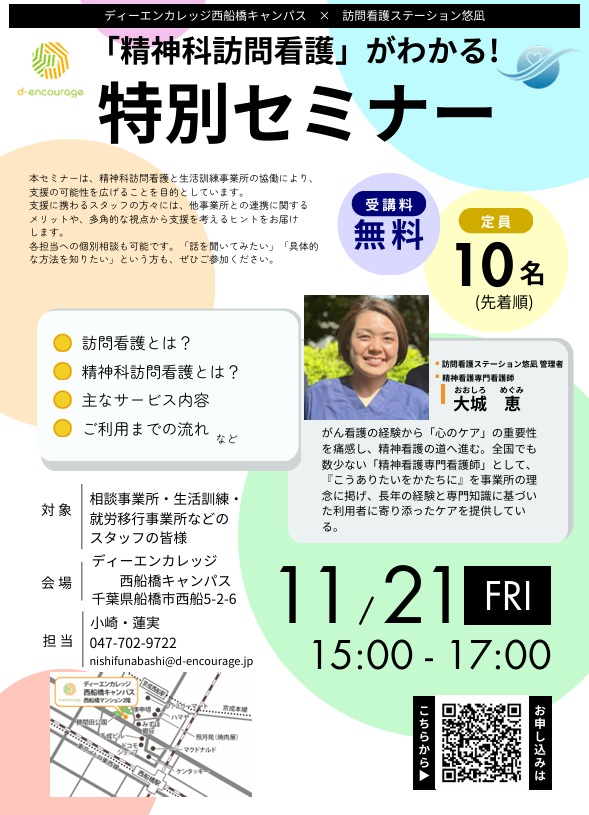 「精神科訪問看護」がわかる特別セミナー開催いたします。
