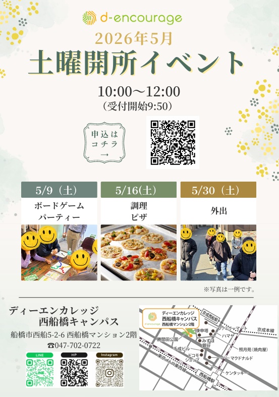 ディーエンカレッジ西船橋キャンパスでは、5月も楽しい土曜イベントを開催します!