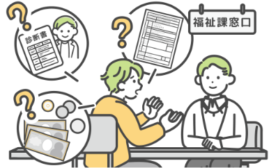 市区町村の障害福祉窓口や自立訓練(生活訓練)事業所に利用に関する相談をおこないます。