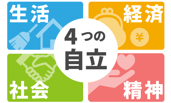 「自立」と聞いてぱっと思い浮かぶのは、生活的自立と経済的自立だと思いますが、社会で自分の力で生きていくためには、社会的自立と精神的自立を目指すことがとても重要です。